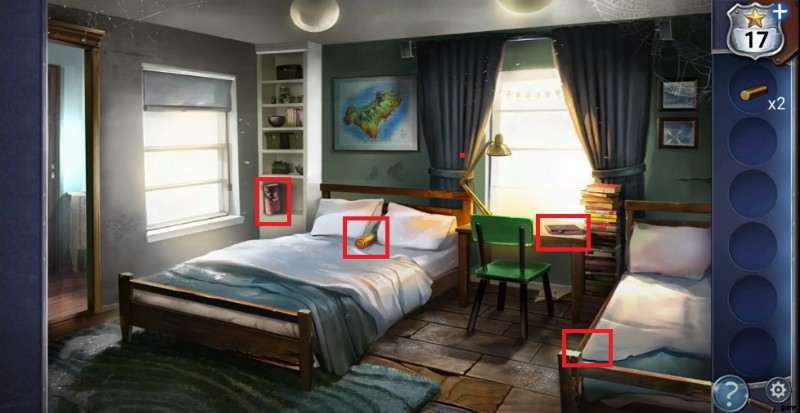 - 左側のベッドをクリックして、ミニゲームの入った箱を出してください。