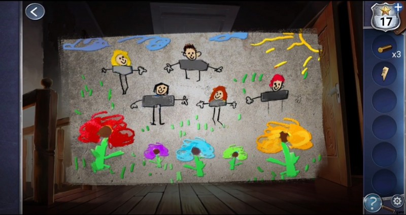 - しばらく部屋を出て、2 つのドアの間に絵が描かれているのを確認し、部屋に入ってパズルを解きます。 赤のように絵に花の色を保つ 、紫 、青 、緑 、黄