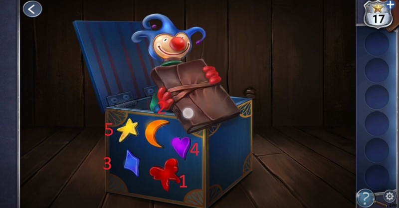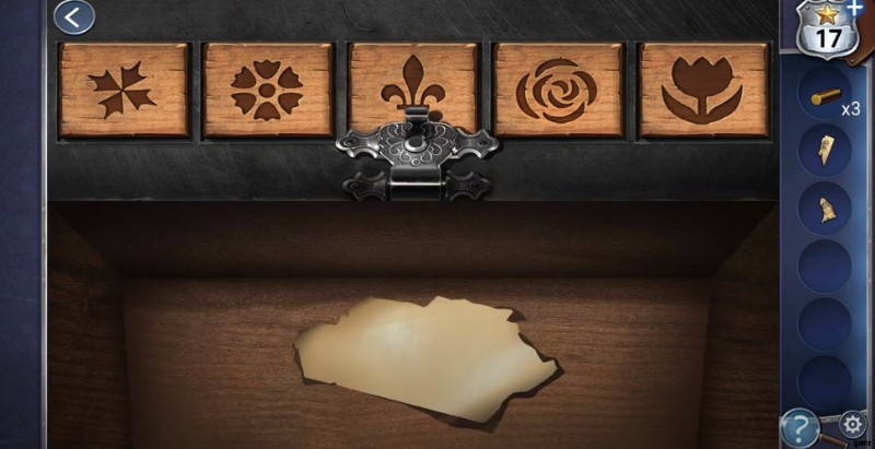 - 最近ロックを解除したボックスの横にあるラグを取り外して、別のパズルを発見してください。今回は、やり取りした本にある 5 つの異なる画像を追加する必要があります。前の場所に戻って本を見て形を発見してください。