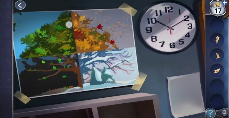 - 戸棚に向かい、絵をクリックして手がかりを見つけてください。絵をタップすると、いくつかのピースが欠けていることに気づきます。