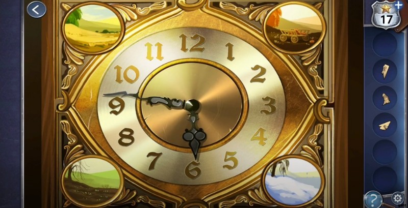 - 部屋を出て、階下に降りて老人のところへ行きましょう。左側の時計に向かい、時計に重りを置きます。