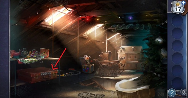 - 屋根裏部屋に着いたら、左側のベビー カートの近くにある青いボックスをタップすると、4 つの異なる形が表示されます。