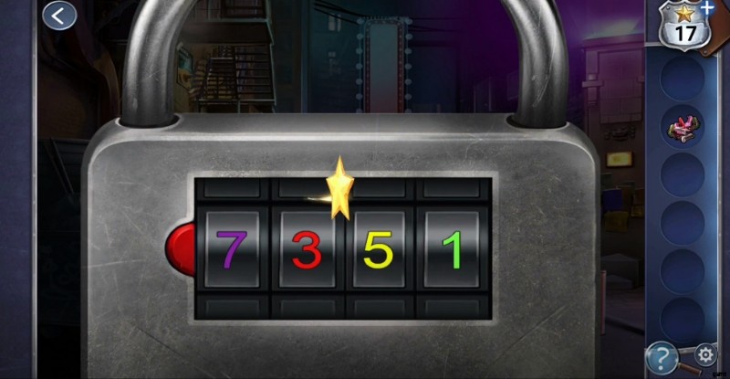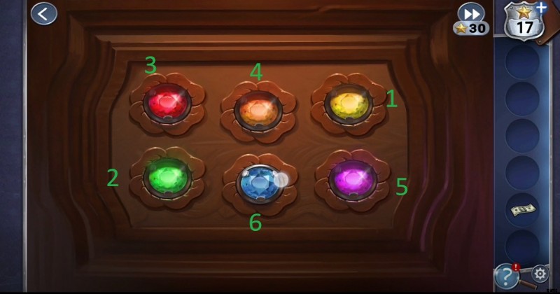 - その後、右側のドアに向かい、ポスターに続いて紫 7、赤 3、黄 5、緑 1 の番号を入力します。ドアを通過して楽屋に行きます。