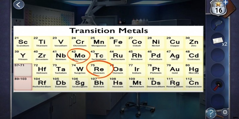 - More は、Mo の 2 つの部分に分けなければならない手がかりです そしてRe. では、周期表でこれら 2 つの単語を見つけて、その値を覚えてパスコード (4275) を取得してください。