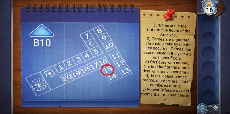 - では、紙を選んで、マーフィーにミニゲームを始めさせてください。説明をよく読み、地図上の B10 階と 15 号室を 2 回クリックしてエリアにアクセスしてください。