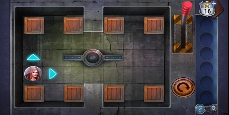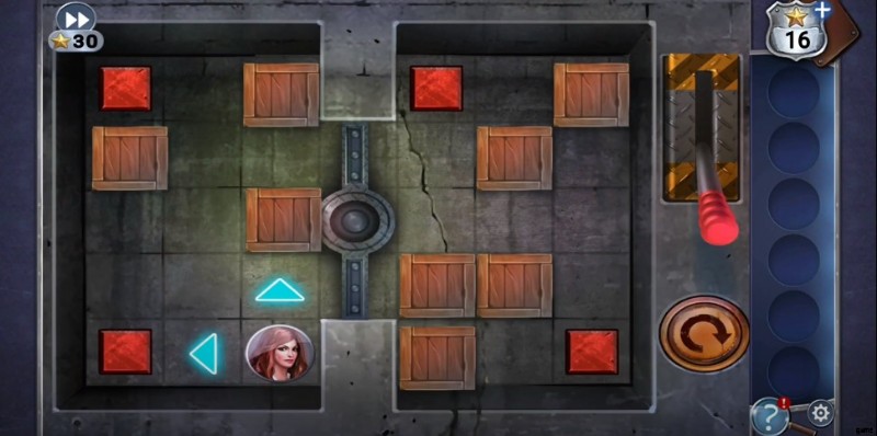 - 最後に到達するために解決しなければならないパズルがもう 1 つあります。あなたの仕事は、ボックスを赤いプレートに押し込むことです。右側にあるレバーを使用して、エリアの真ん中にあるゲートを動かすことができます。