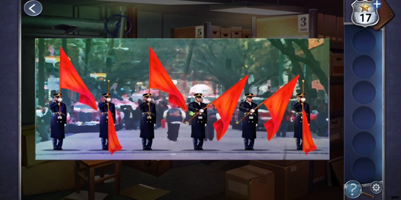 - 濡れた布を選び、乾いた絵の具を使って手がかりを見つけます。フラグを使用すると、上、下、上、左、左、下のキャビネットを開くことができます。