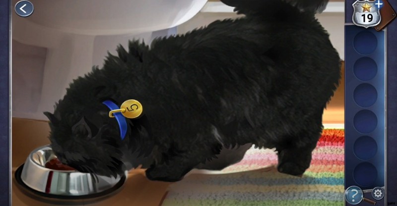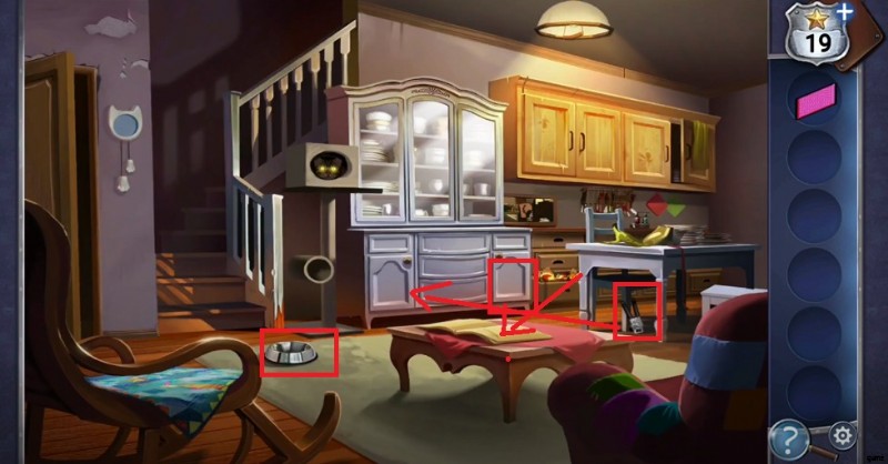 - 次に、左側のキャビンを開けて、キャット フードの缶を入手します。テーブルの下から缶切りを手に入れて缶を開け、ボウルに食べ物を注ぎます。その場所を出る前に、忘れずにキャット フードを手に入れ、テーブルに印刷されたクロスワード パズルに注目してください。