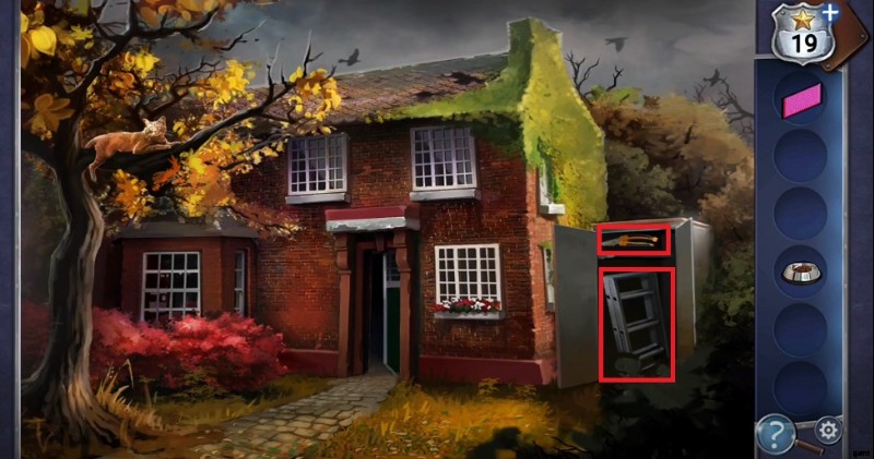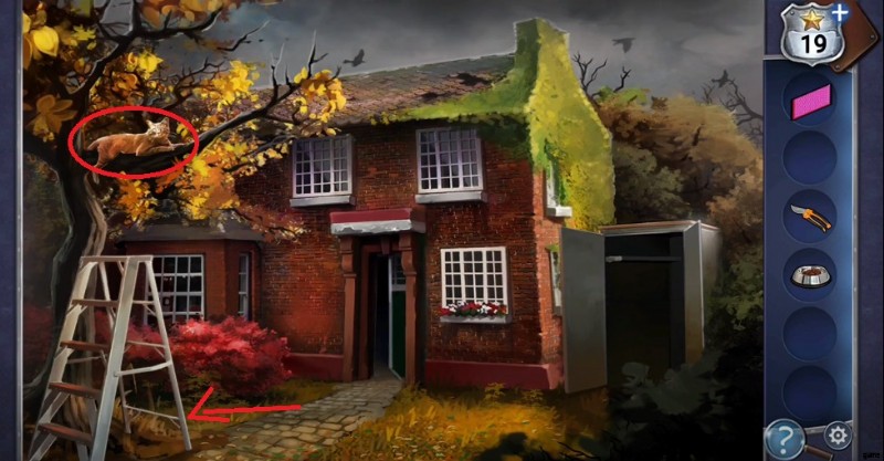 - はしごを選択して木の下に配置し、猫を降ろします。数に注意してください (3 ) が猫の首輪に印刷され、色 (紫) とともに表示されます。