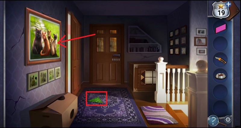 - その後、2 階に戻り、トランクをクリックします。ここでの目的は、布を使って箱を開けるために最近完成させた絵に従って、動物を一致させることです。