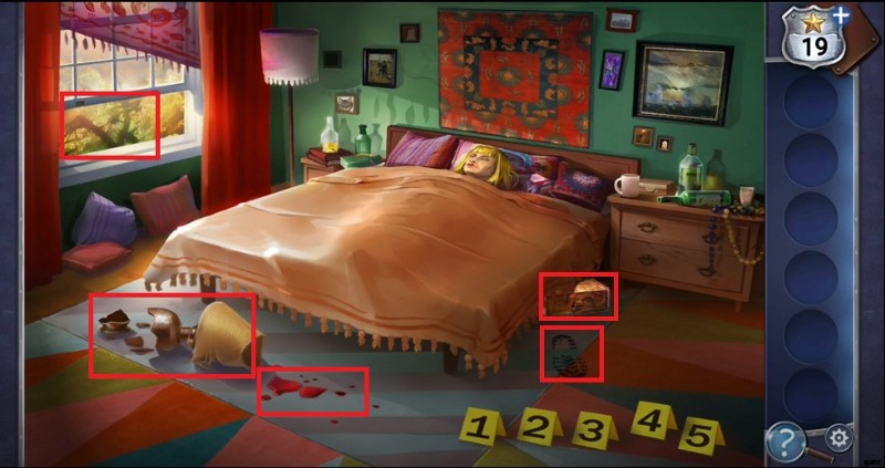 - 部屋に着くと、眠っている人がいるかもしれませんが、その人が死んでいるかどうかはわかりません。したがって、何も騒がずに部屋の周りの証拠を見始めます。
