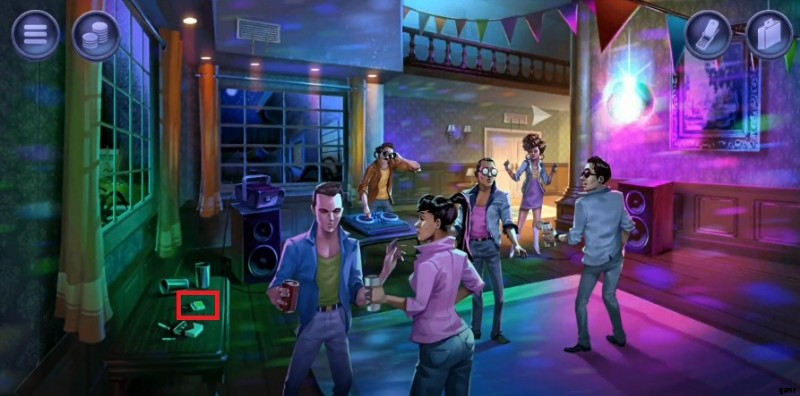 レベル 9 は、ポイント アンド クリック インターフェイスを使用して 4 つの異なる場所に移動できる美しい家に設定されています。他のどのレベルよりも多くの場所を探索できるため、Operation Midnight を完了するのは簡単ではないようです。ホールの左側には、人々が踊りながら楽しんでいる部屋を発見できるかもしれません.