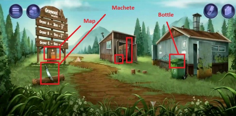 - Return to the bathrooms, open your inventory, and keep Map , Pitchfork , Wheel, and Machete where you found them.