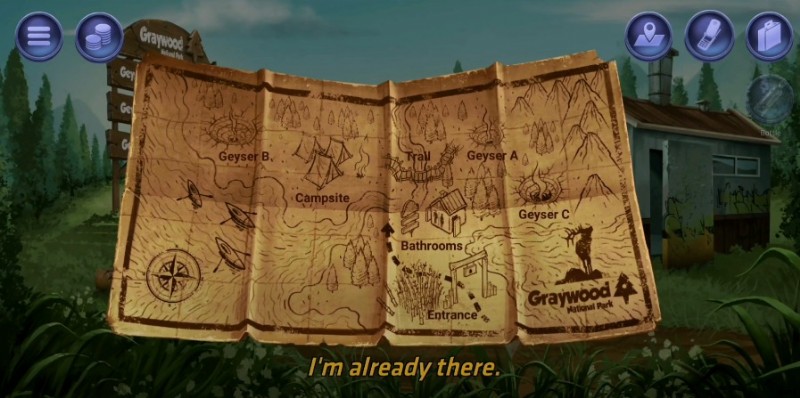地図アイコンをクリックして地図を開きます をクリックし、間欠泉 C の場所をタップしてそのポイントに到達します。