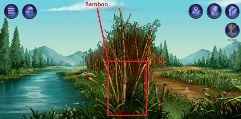- インベントリを開いて、竹を切るマチェーテを選択し、インベントリに追加します。ロープと竹を組み合わせて筏を作ります . 死体を拾う シーンから、いかだに置き、ひっくり返します。誰もそれを見つけることができませんでした。