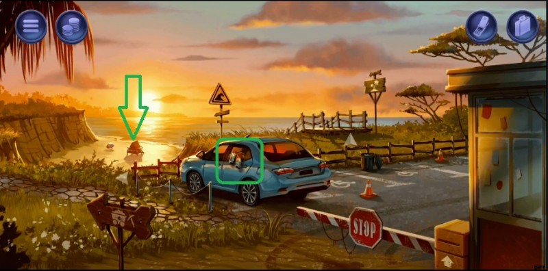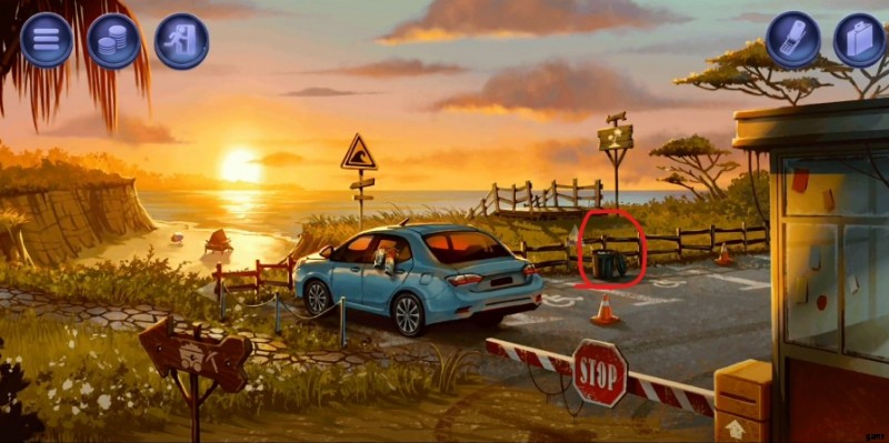 - 車に戻り、制服を見つけた場所に保管します。スーツケースから地図を選んで、車の右側のゴミ箱に入れます。