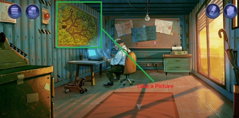 - 次に、バッグをクリックしてカメラを取得し、インベントリに追加します。左側の矢印を押して、最初の位置に到達してください。