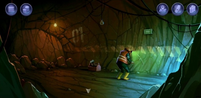 - 労働者に話しかけてハンマーを借り、マップを開き、最初の位置をクリックして洞窟の最初から旅を始めましょう。