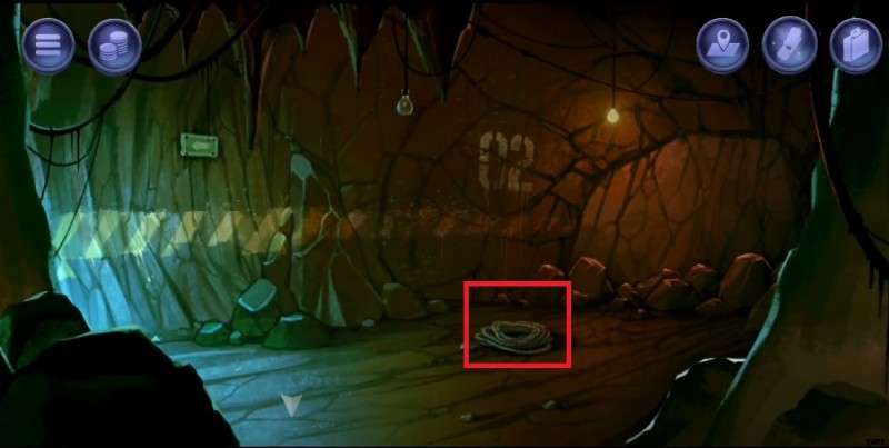 - ロケーション 2 に到達したら、床からロープを入手し、日没のロケーションをクリックします。 .