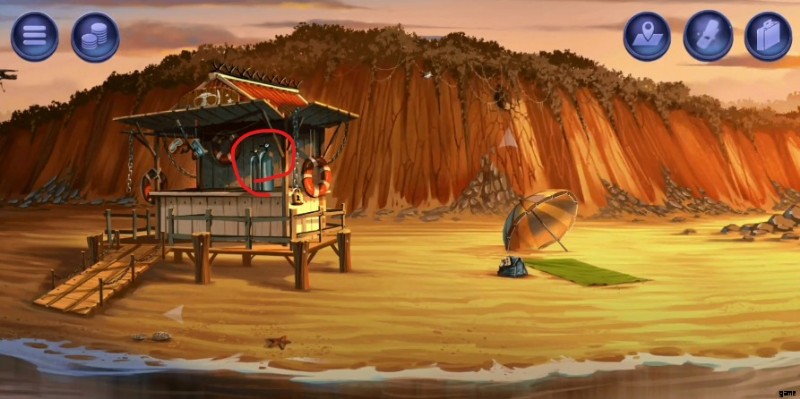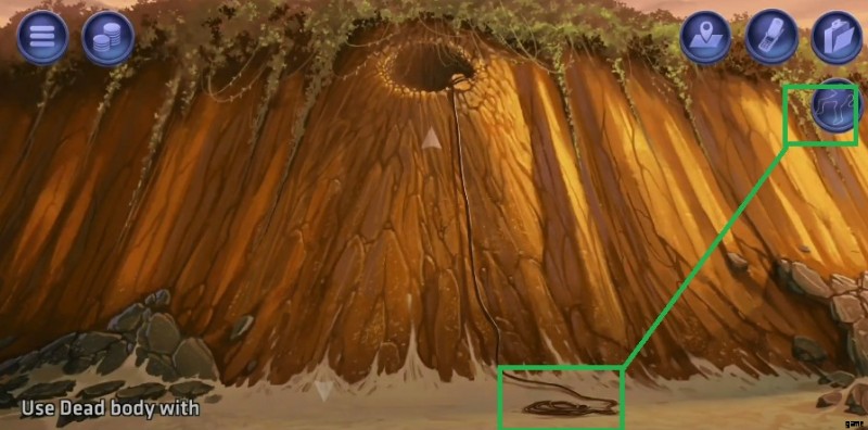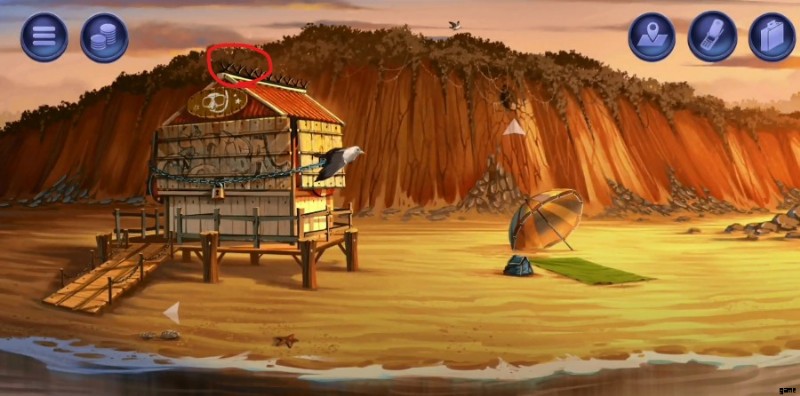 - ロープを死体に取り付け、もう一方の端をクリックして崖を登ります。ひもをたたいて死体を引き上げ、浜辺に戻ろう。ペンチを選択して鳥のスパイクを入手 閉ざされた家から。