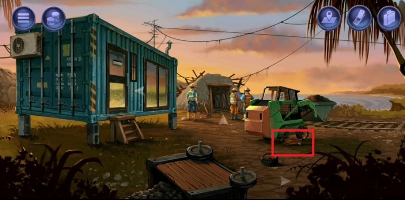 - ロープを選択し、左側の石と一緒に使用します。しばらくその場を離れて、車両に戻ります。