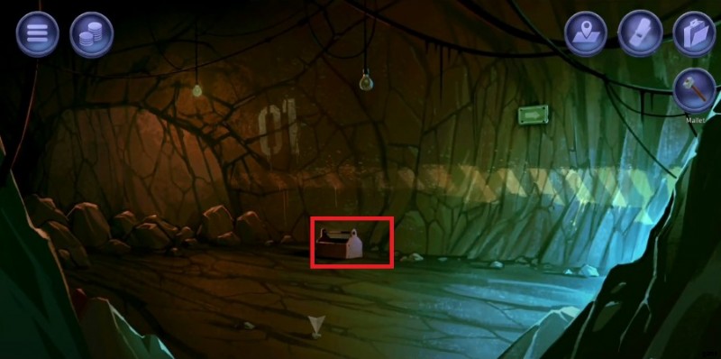 - さて、場所 2 に行き、ロープを見つけた場所に保管します。最初の場所に向かい、木槌を箱に入れます .