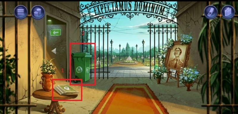 - 次に、入り口近くのゴミ箱をつかみます。注:死体を隠した後は、アイテムを元の場所に戻すことを忘れないでください。