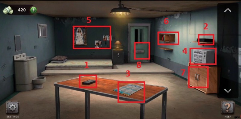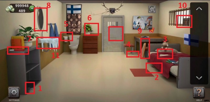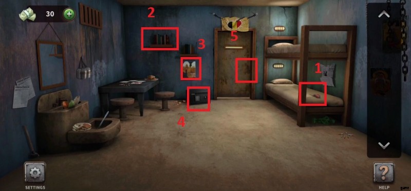 少女が刑務所からの脱出を計画するためにあなたの助けを必要としています。ゲームには見なければならないオブジェクトのリストがないため、隠しオブジェクトを見つけるのは簡単ではありません。したがって、すべてはあなたのパズル解決スキルにかかっています。探偵になり、隠されたオブジェクトを見つけてパズルを解き、ドアのロックを解除して新しいレベルに到達してください。 100 Doors:Escape from Prison Level 1 ウォークスルーの解決策は次のとおりです。