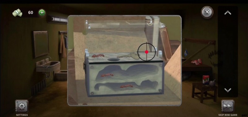 - 箱をクリックしてズームインし、吹き棒を使ってすべてのアリを瓶に投げ込みます。完了したら、その場で鍵を入手し、それを使用してドアのロックを解除してください。