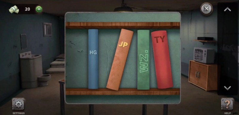 - 次に、右側の本棚に向かい、HG などの写真に印刷された手がかりに従って本を調整します 、日本 、WZ 、および TY .