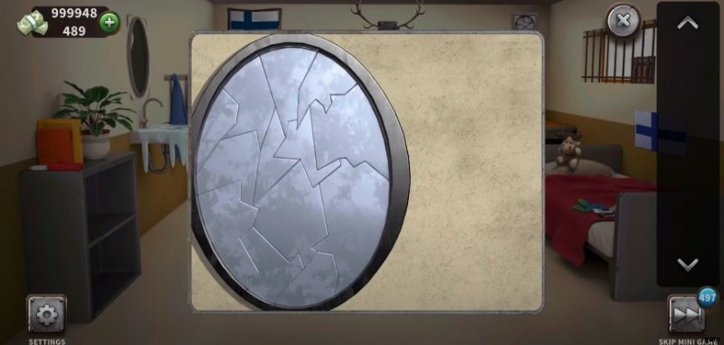 - 洗面器をクリックして、すべてのミラー ピースをフレームに追加します。ピースを正しく取り付けて形を見つけることが目的のミニゲームです。