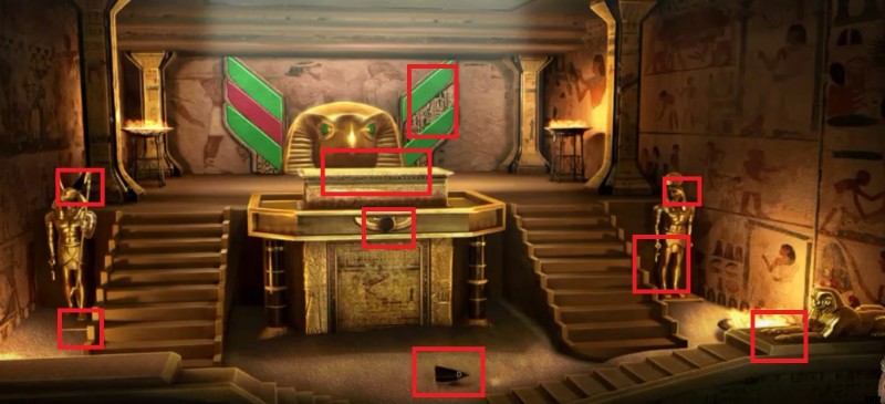あなたはミイラと一緒にピラミッドに閉じ込められています。脱出を計画するのは簡単ではない美しい部屋です。このゲームには、隠しオブジェクトを見つけるのに役立つアイテムのリストはありません。つまり、パズルを解くスキルに依存しています。