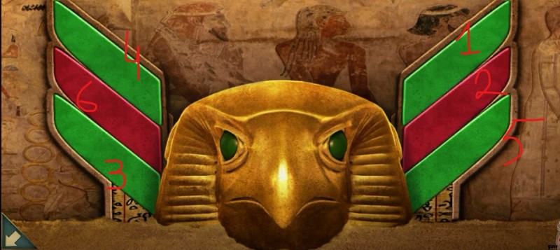 - 次に、翼を特定の順序でタップして、ワシの口から青い宝石を手に入れましょう。