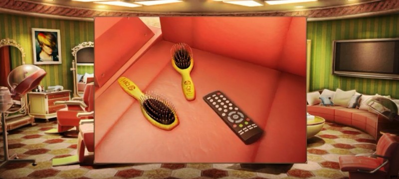 - さて、リモコンを使ってテレビの電源を入れます。テレビには、ヘアドライヤー、くし、トング、その他のアイテムの画像が表示されます。