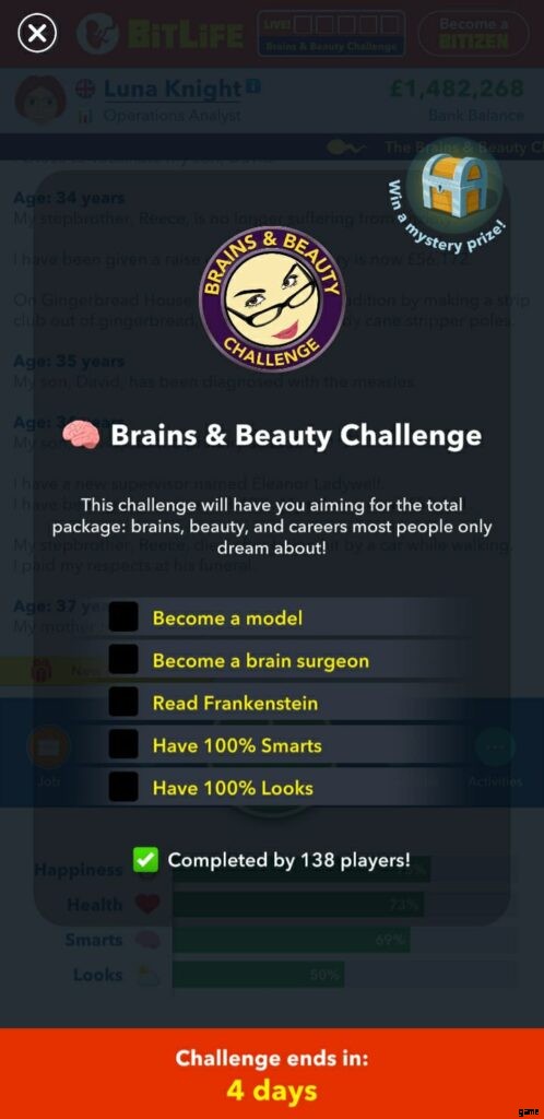 Bitlife ガイド – 頭脳と美のチャレンジを完了する方法