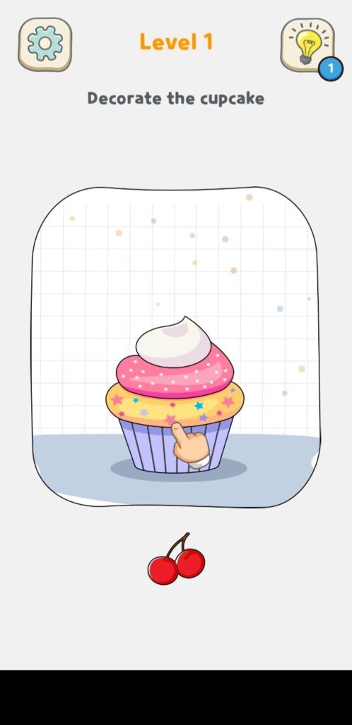 Displace It レベル 1 を解くには、チェリーをカップケーキの上にドラッグする必要があります。