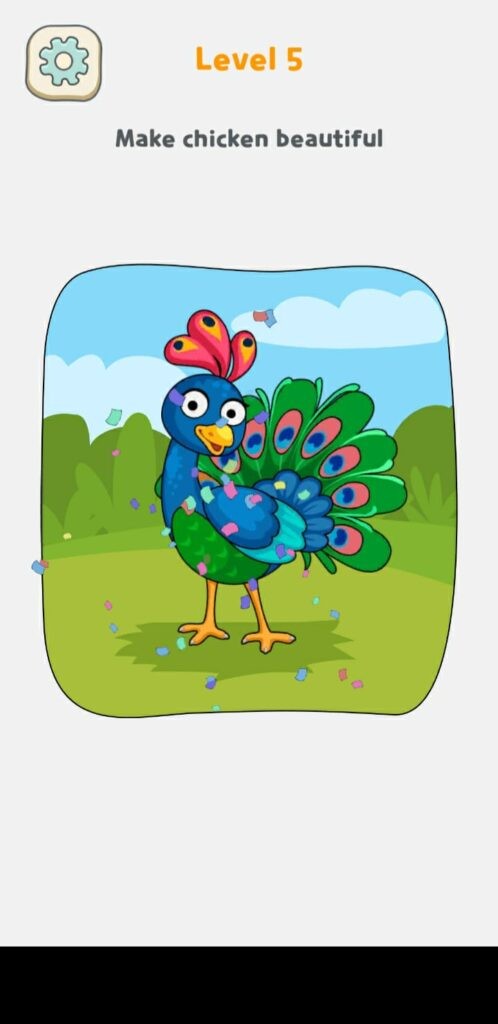 レベル 5 では、鳥のカラー トレイを動かし、ブラシを使って鳥を孔雀に変えます。