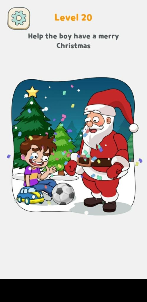 ゲームは悲しい少年のイメージを表示しますが、彼を幸せにする必要があります。それで、老人をサンタクロースに変えてください。