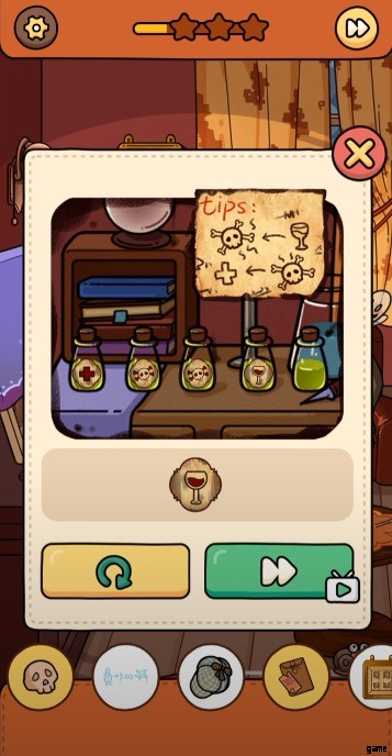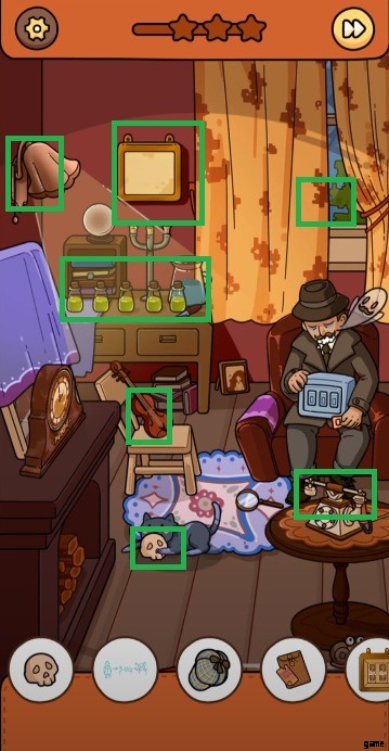 - レベルを開始し、テーブルから解毒剤を手に入れ、探偵に渡して生き残るのを手伝ってください。彼の口から葉巻を集めて、女の子の画像をタップしてください。