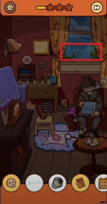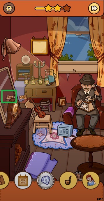 - 鏡の前の時計に向かい、それをタップして、探偵が生きていた過去に戻ります。