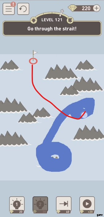 - IQ ダンジョン レベル 121 を完了するには、岩に衝突したり指を離したりせずにボートから出口まで線を引く必要があります。