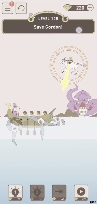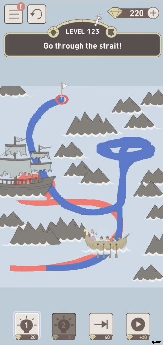 - 上の画像のように、指でボートを描いてパズルを解いてください。
