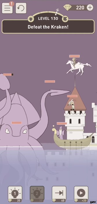 IQ ダンジョン レベル 130 では、タコのモンスターであるクラーケンを倒さなければなりません。今回は、操作する 3 人のキャラクターがいて、それぞれの頭上にヘルス バーがあります。その間、モンスターはこれまで以上に強力になり、容赦しません。画面上にハイライトされた 3 つのポイントが表示されるので、そこを攻撃し続けてビーストを倒してください。