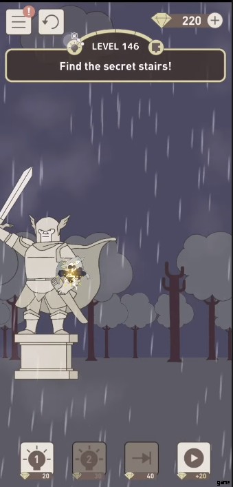 IQ ダンジョン レベル 146 では、2 人の敵を保持している彫像しか利用できないオープン フィールドで秘密の階段を見つけることができるため、完了するのに問題のある課題がもたらされます。