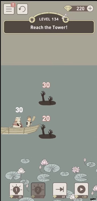 タワーにたどり着くことが、ボートを漕いでいるときの最終的な目標です。船を引きずって数を集め、自分より数が少ない闇の敵を倒さなければならないため、今回の課題は解決が難しいかもしれません。