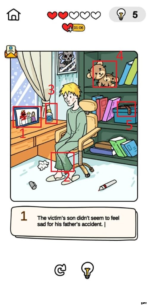 - 部屋にある奇妙なものを見つけるには、本棚のテディベアをタップする必要があります。