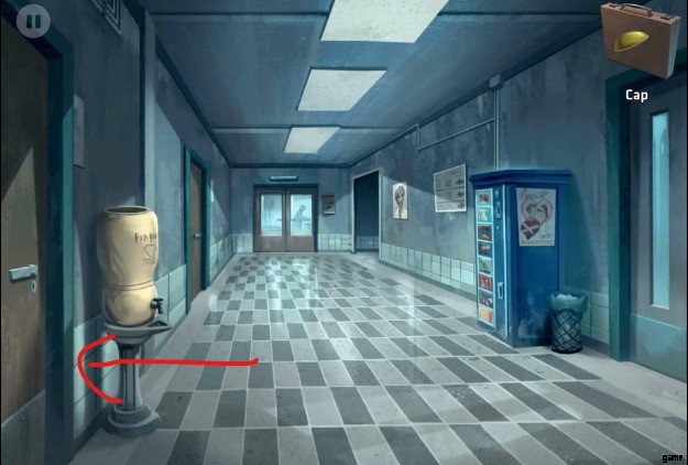 - しばらく部屋を出て、キャップを集めます 水タンクから .タンクの右側には、他の隠されたオブジェクトを発見するために通らなければならないドアがあります。