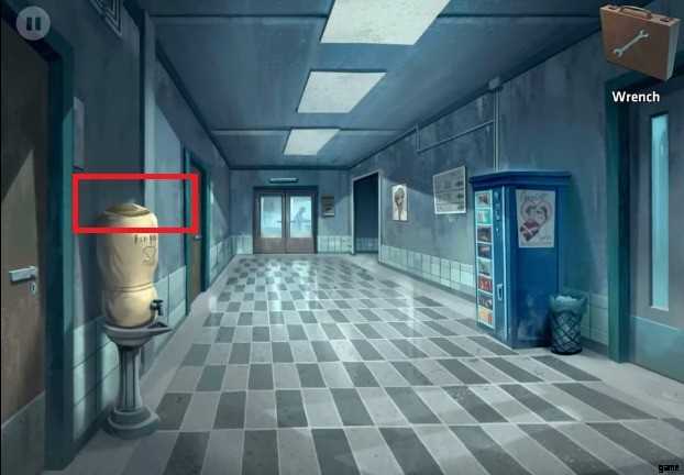 - 廊下に出て左側の 2 番目の部屋に向かい、ドライバーをキャビネットに戻します。部屋を出て、最初の部屋に向かいます。ここでは、レンチとテープの両方を元の場所に戻しておいてください。