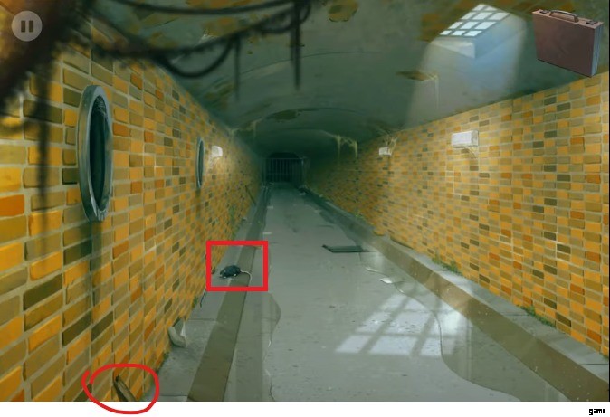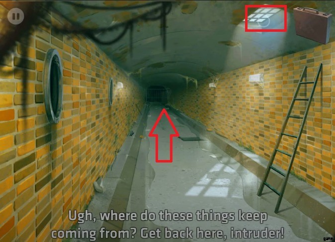 - 下水道に戻り、はしごをタップしてインベントリに追加し、下水道の別の側面を発見するために移動を開始します。