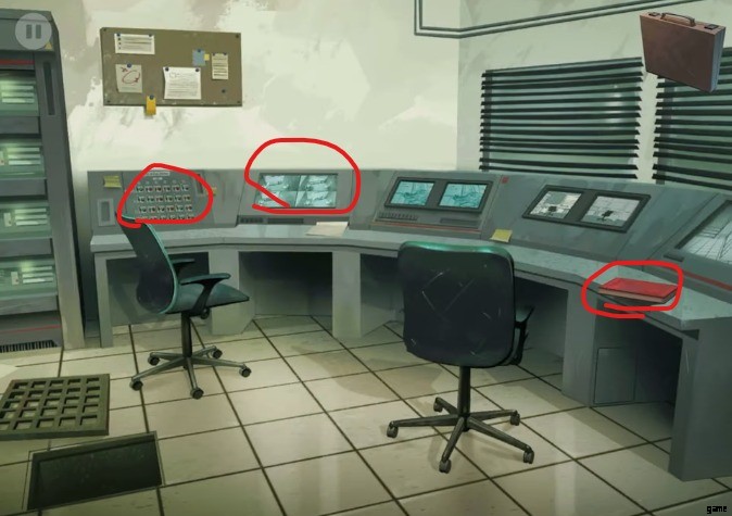 - これで、コントロール ルームに到達しました。目標は、モニターをタップした後、在庫からテープを挿入することですが、まず、テーブルから HVAC マニュアルを取り出します。